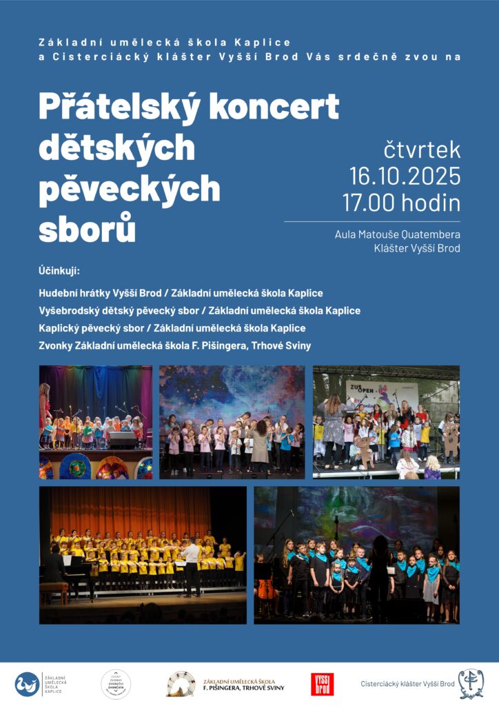 Srdečně zveme do kláštera ve Vyšším Brodě na koncert dětských pěveckých sborů 16.10.2025